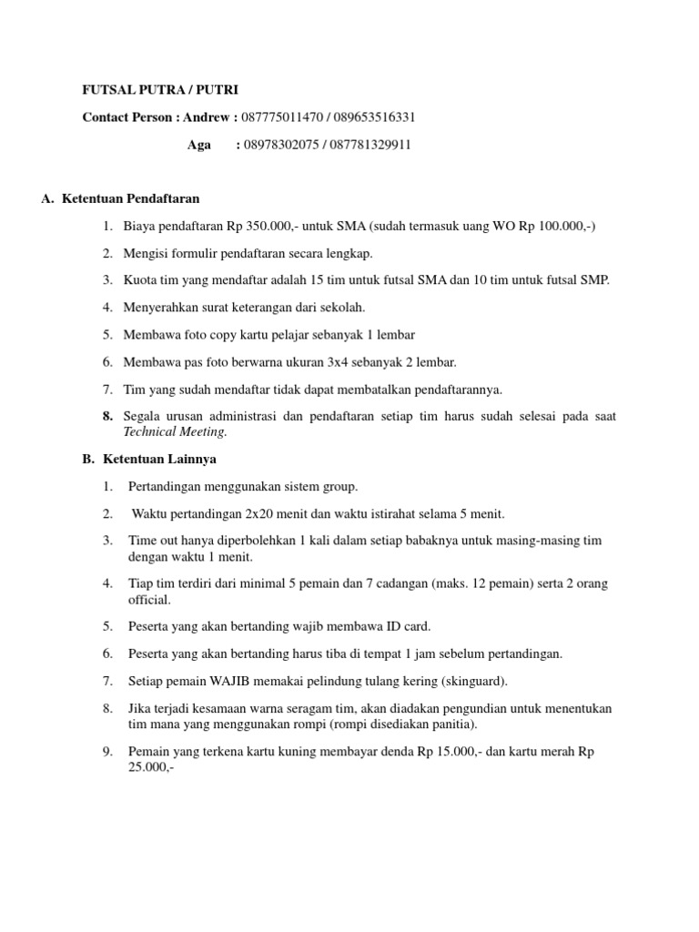 Contoh Peraturan Futsal Horti Cup 2k17 Pdf